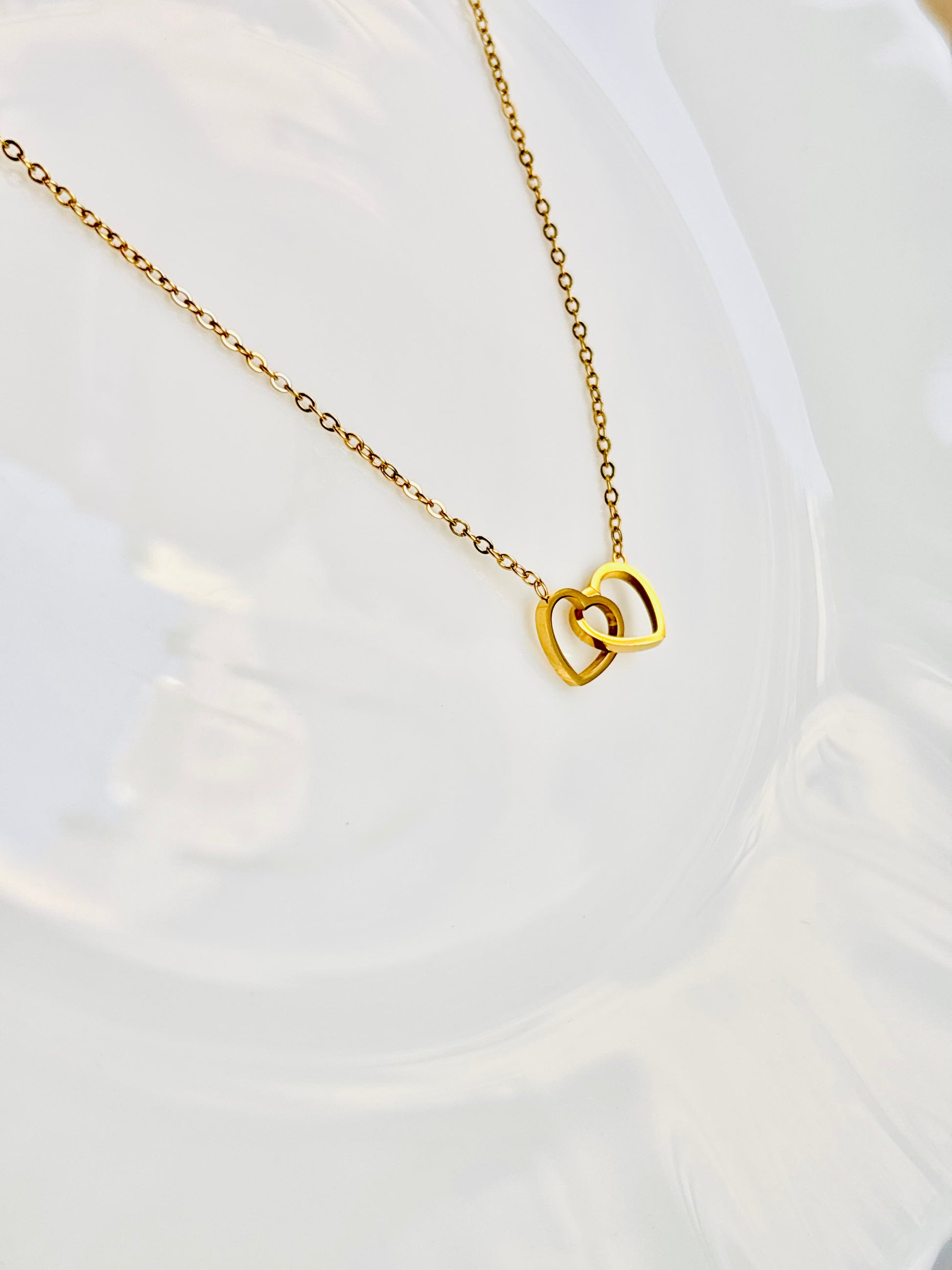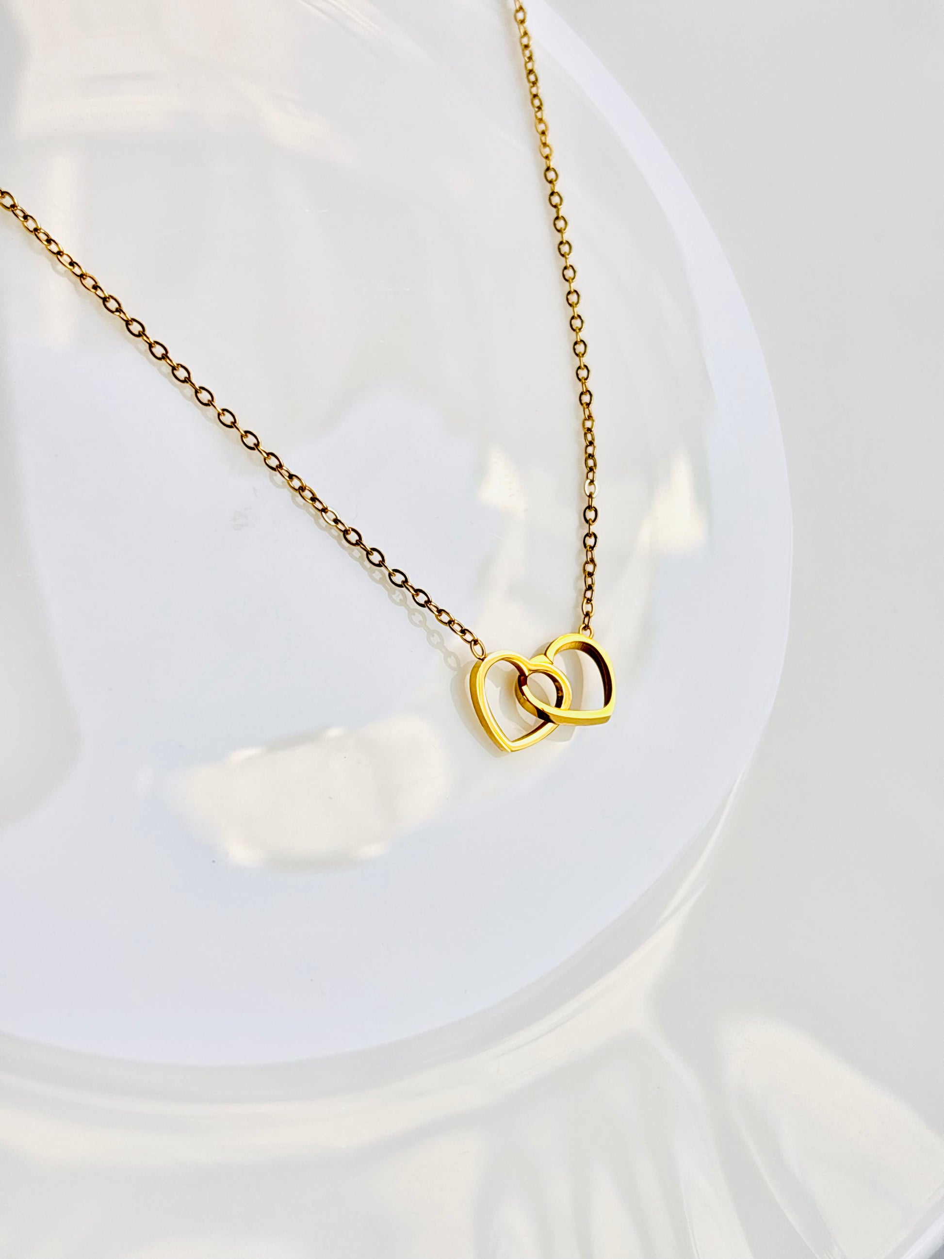 This playful pendant features a gold-plated heart locked inside another heart, hanging on an adorable chain. Made with a stainless steel base, it’s waterproof, tarnish-resistant, and easy to care for. Inspired by Korean design, it brings an elegant and classy touch to your everyday style.